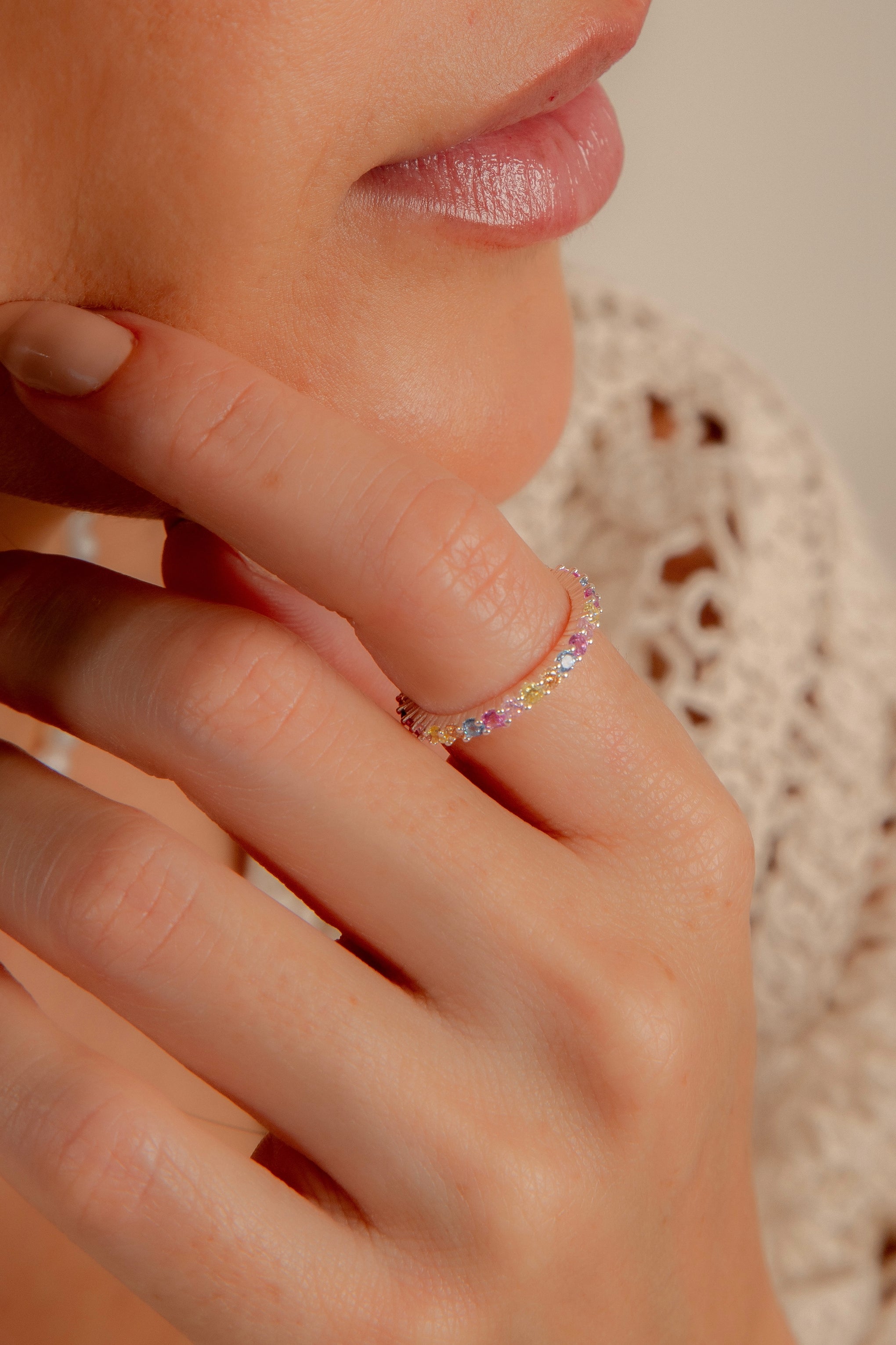 • Atemporalidade Moderna: A Prata 925 com Ródio Branco garante que, apesar das cores vibrantes, o anel mantenha uma aparência contemporânea e refinada.