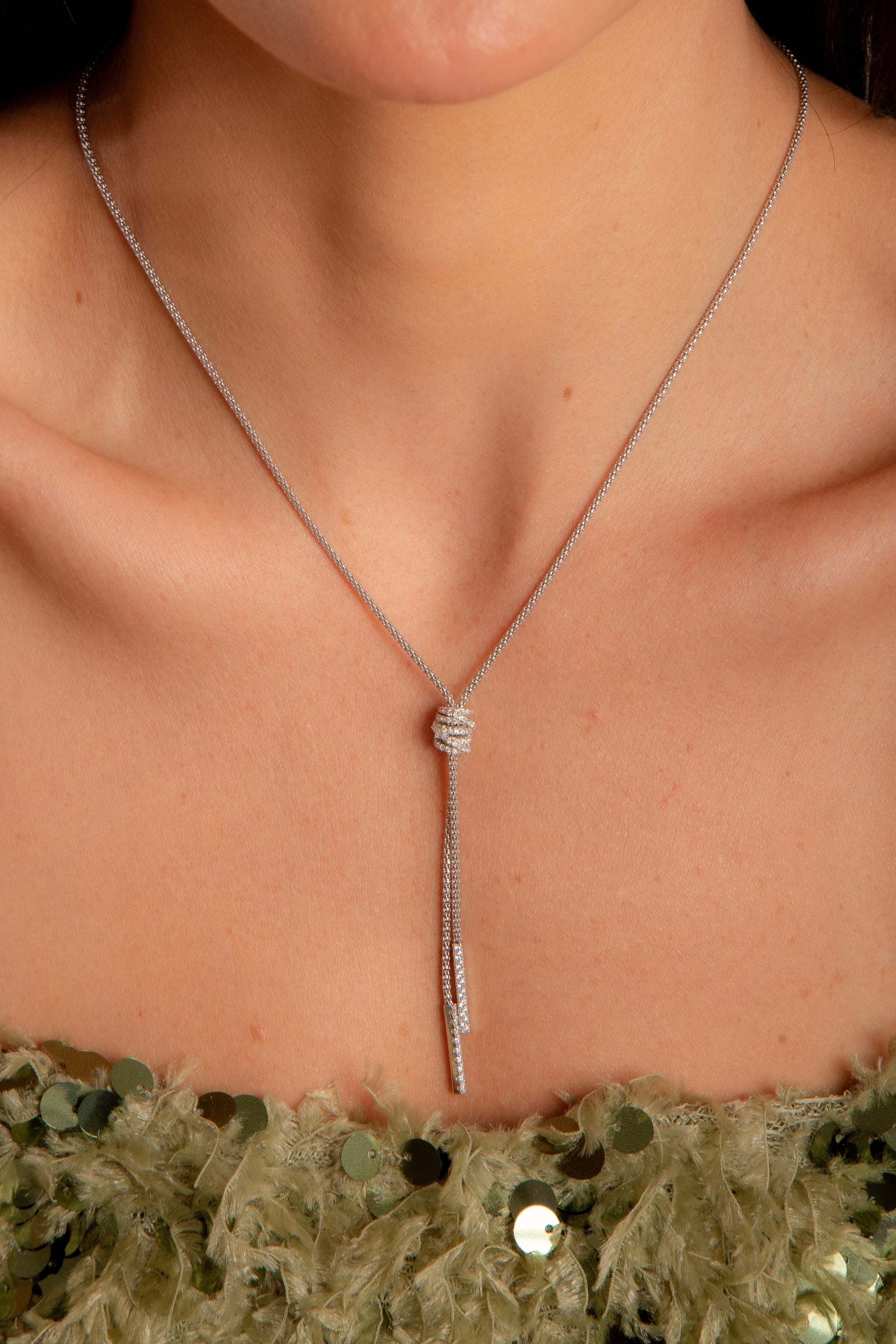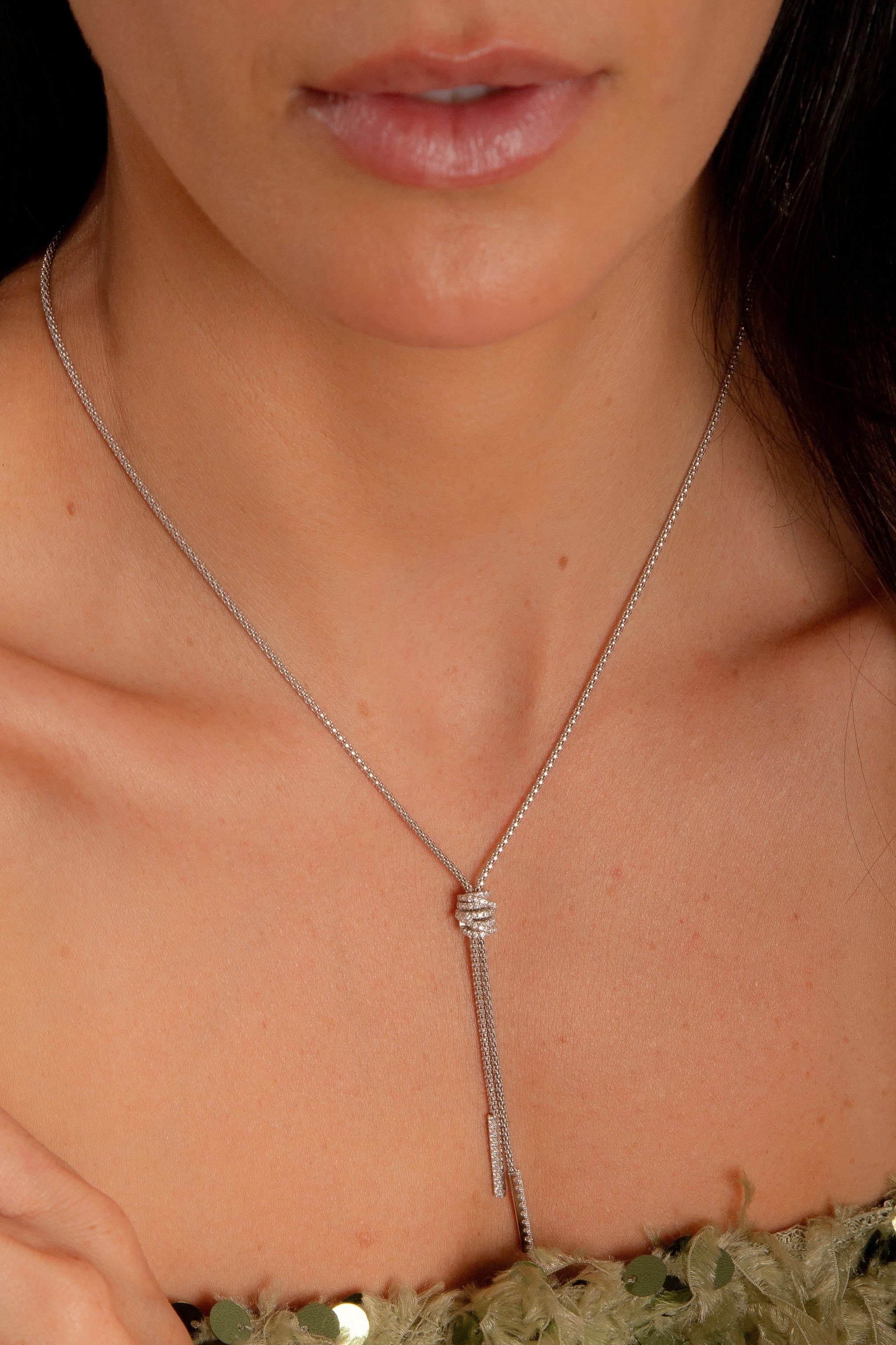 O Colar Gravata Nó é uma joia de design contemporâneo que une sofisticação e delicadeza em uma silhueta marcante. Com acabamento em prata 925 banhada a ródio branco, a peça exibe um elegante nó central que simboliza união, força e continuidade. Seu formato gravatinha alonga o colo com suavidade e leveza, criando um visual moderno e feminino. Com 40 cm e extensor de 5 cm, esse colar ajusta-se perfeitamente ao pescoço, sendo ideal para compor camadas ou brilhar sozinho como destaque do look.