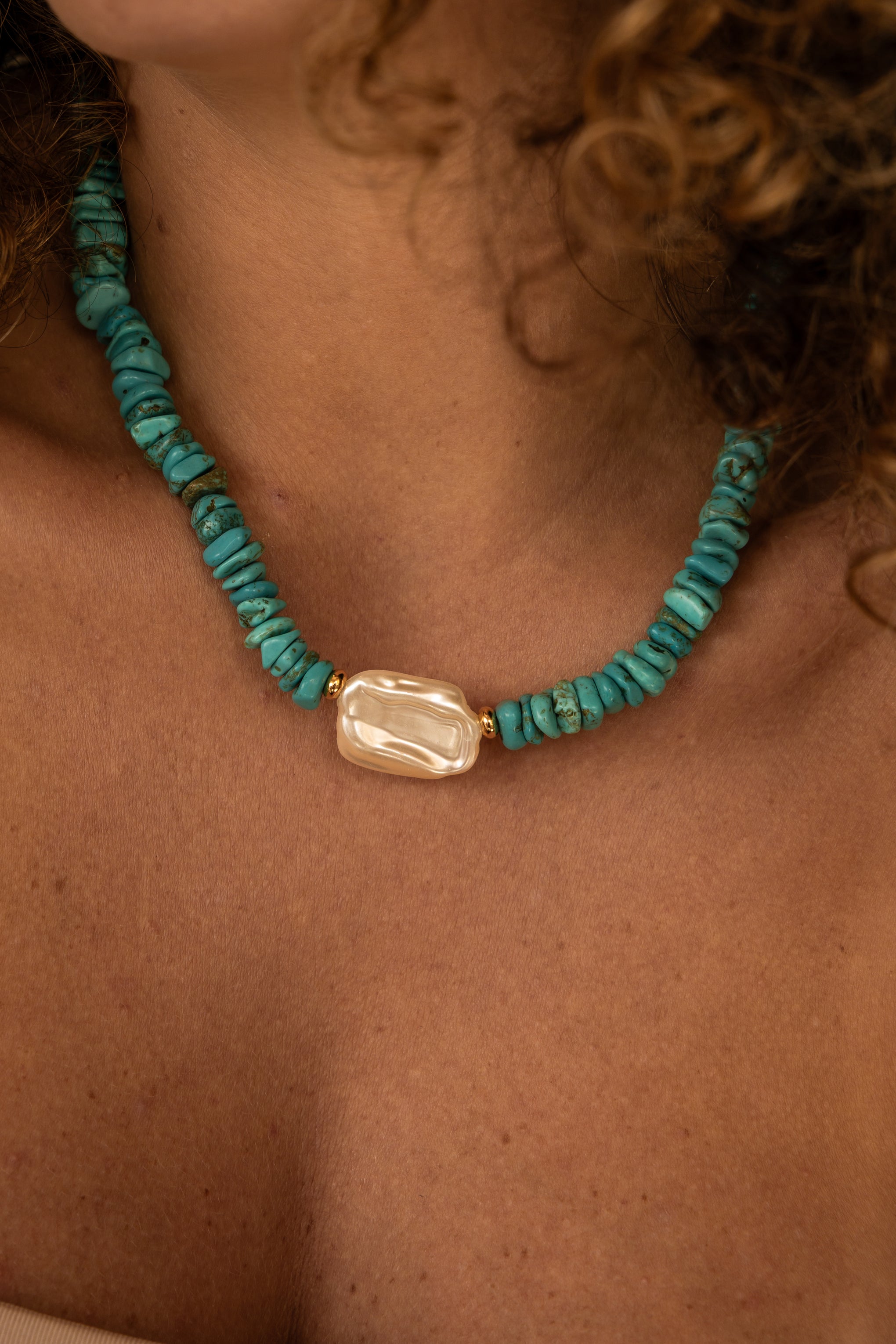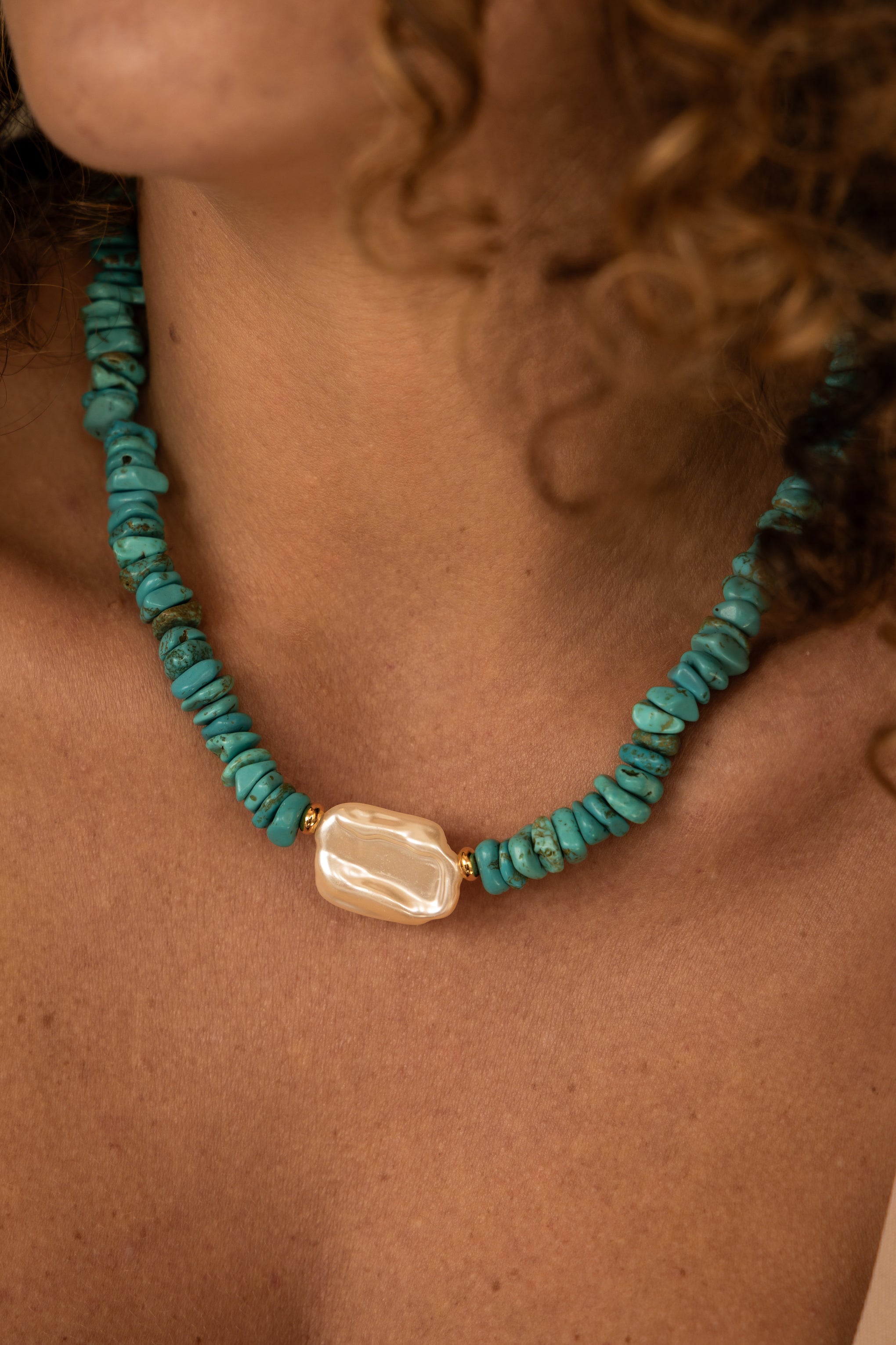 Colar com Pedras Naturais e Pingente Perola Barroca